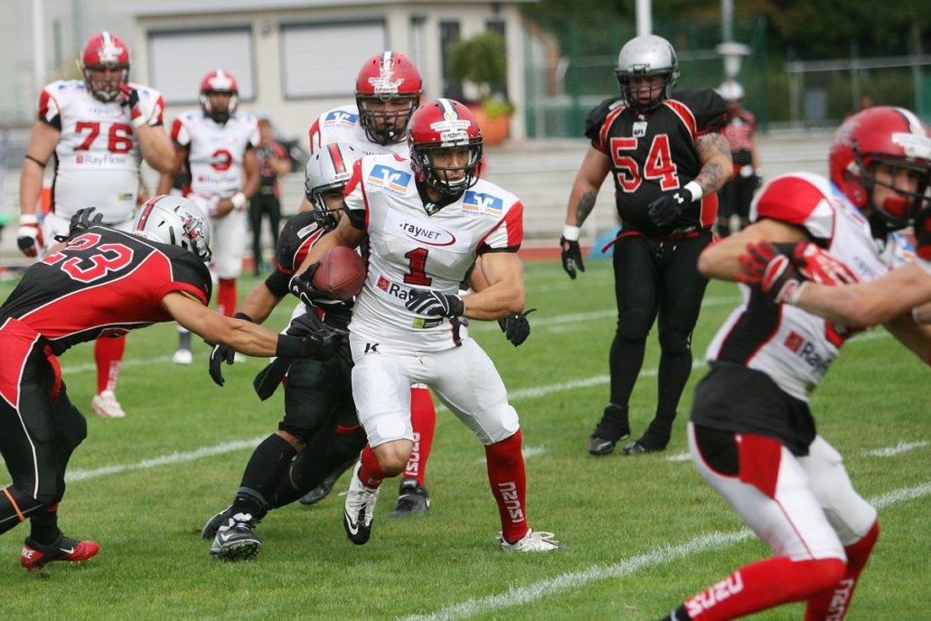 Man kann den Umbruch innerhalb der Mannschaft von Head Coach Matthias Dalwig nunmehr auch an den Namen festmachen. Tummelten sich im vergangenen Jahrzehnt stets bekannte Namen auf dem Roster der Lahnstädter, kratzt man sich nunmehr bei einigen Personalien doch recht verwundert den Kopf. „Wir sind inzwischen dazu gezwungen junge, hungrige Spieler an die GFL heranzuführen, was die Aufgabe für uns Coaches jedoch extrem reizvoll macht“, so Defensive Coordinator Sergej Schmidt, der auch darauf hinweist, dass dieser Trend schon in der letzten Spielzeit begann. „Auch letztes Jahr haben zum Beispiel mit Danijel Katusic, Klaus Afflerbach Spieler auf dem Feld gestanden, die sofort den Sprung aus unterklassigen Ligen schaffen mussten und dies auch gut gemacht haben.“ Neben den neuen Imports aus Nordamerika, welche mit Linebacker Sean Barber (Azusa Pacific University), Curtis Slater (West Texas A & M University) und dem Kanadier Chris Hodgson (St. Mary University) allesamt in der Defense aktiv sind, baut man in der Offense vor allem auf die Rückkehrer in Quarterback Micah Brown – der darüber hinaus auch zum Offensive Coordinator befördert wurde – Luke McCann und Bernard Luster. Was den Kader der deutschen Spieler angeht, sollen die Runningbacks Patrick Trumpfheller (Frankfurt Universe), Andre Jones und Dominik Heinz jene Lücke schließen, die durch den Abgang von Johannes Thiel nach Berlin entstanden ist. Verzichten muss man für die ganze Saison wohl auf die Dienste der Stammkräfte Christian Köller (Beinbruch) und Jimmy Yock (Handbruch).
